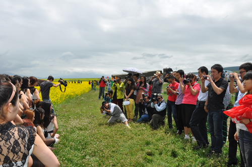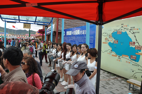 中午,一行到達青海湖畔。天高地闊的美景與靚麗的美女即刻構筑成為一道精彩的風景,隨行攝影師、攝像師即刻拿起機器留下許多難得的好畫面。接下來的環保實踐與環保意識推廣為眾多選手留下了深刻的印象,許多選手紛紛表示希望通過自己的行動提高社會環保意識,讓跟多人參與到保護青海湖環境中來。