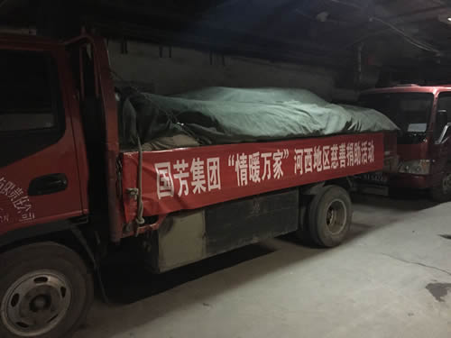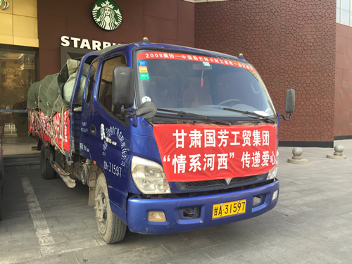 2016年12月12日,甘肅省慈善總會、武威市民政局攜甘肅國芳工貿(集團)股份有限公司共同舉行“情暖萬家”送溫暖活動,將100萬元資金以及價值100萬元的過冬棉服帶給天祝縣岔口驛敬老院的老人們。當日下午,甘肅省慈善總會與甘肅國芳工貿(集團)股份有限公司的各位愛心人士又馬不停蹄的趕赴張掖為當地的孤寡老人帶去了160萬元資金以及價值250余萬元的過冬衣物及被褥。此次活動傳導社會幫扶、精準扶貧精神的同時也默默為社會傳導著一份正能量。