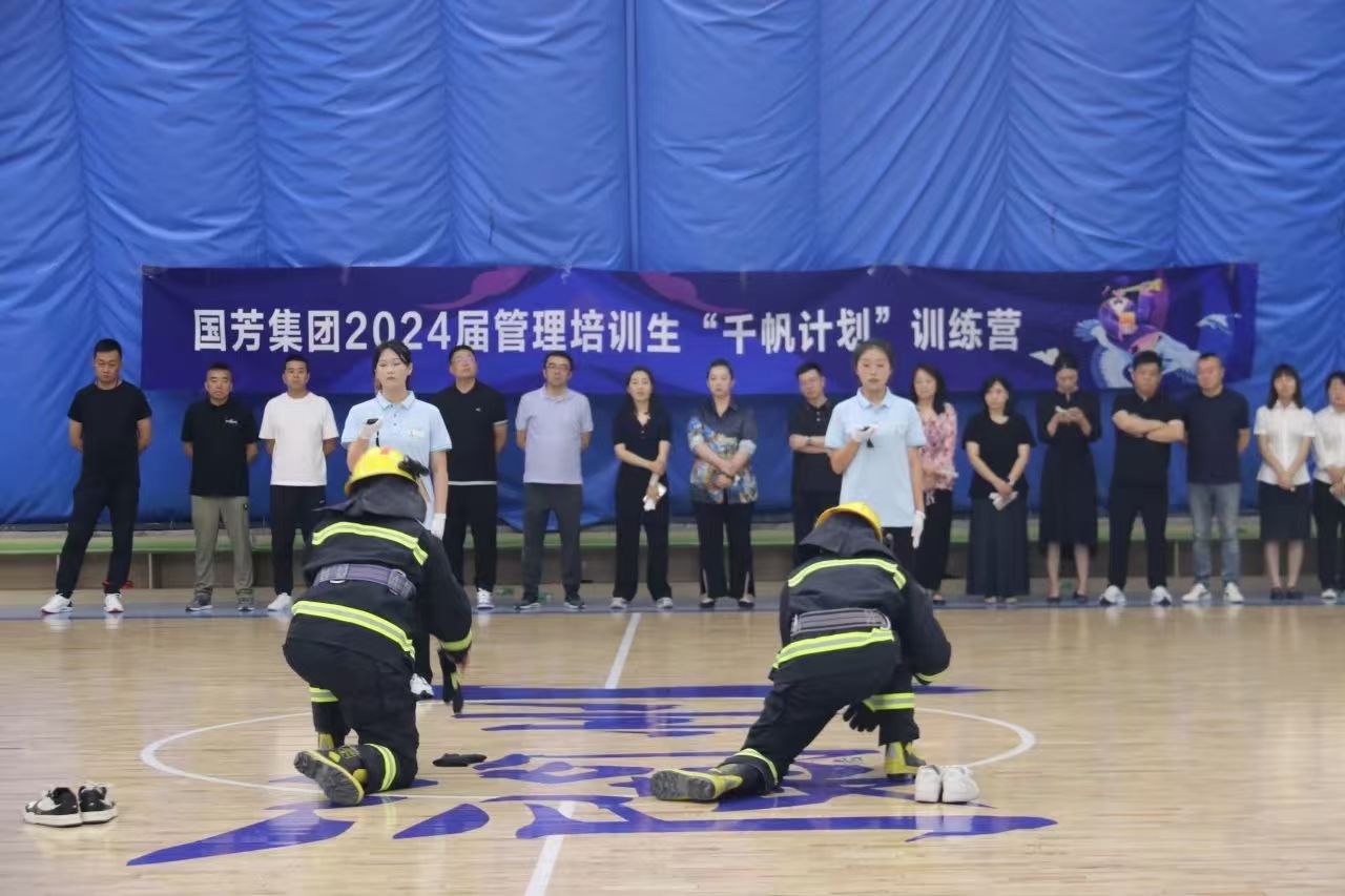 天朗氣清的日子里,管理培訓生的軍訓匯演悄然在國芳百貨81籃球館拉開帷幕。整齊的方陣,颯爽的英姿,堅定的目光,嘹亮的口號,無一不展現了多日來軍訓的成果。通過儀容儀表的訓練、團體合作訓練、滅火器的使用、消防水帶的連接、消防服穿戴等環節的展示,不僅提高了團隊的執行力和凝聚力,更提高了員工集體責任意識和自律意識。